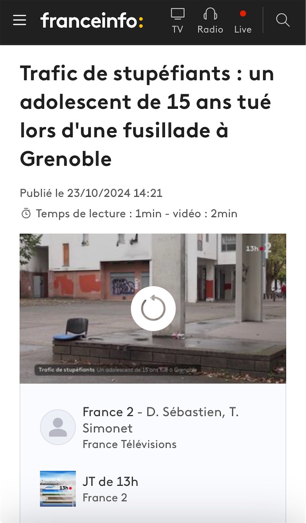 とGrenobleに来たばかりの時に説明されたけれど、2024年に20件以上の銃撃事件が発生し、5人が死亡している。