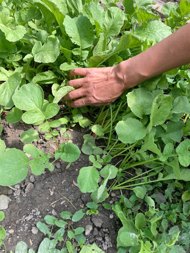 帰りにラディッシュを収穫