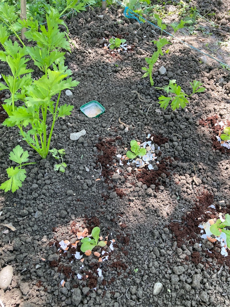 セロリ、サラダ菜の苗を植える