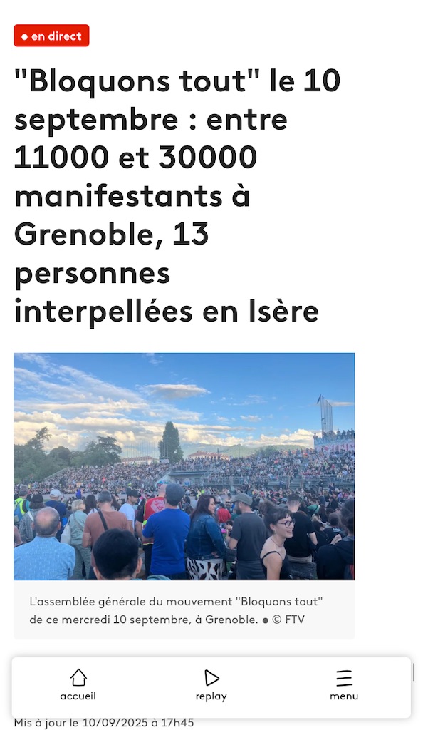 〝9月10日の「すべてを封鎖せよ」:グルノーブルで1万1000人から3万人のデモ参加者、イゼール県で13人が逮捕〟